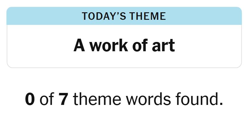Today’s theme or hint for the puzzle is, “A WORK OF ART” and there are seven theme words to be found.
