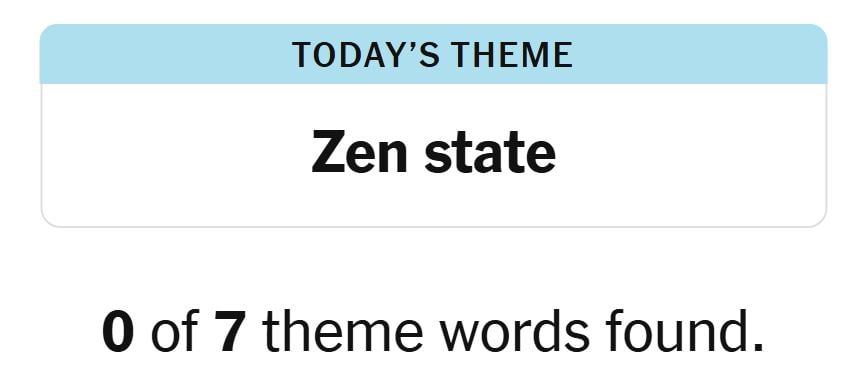 Today’s theme or hint for the puzzle is, “ZEN STATE” and there are seven theme words to be found.