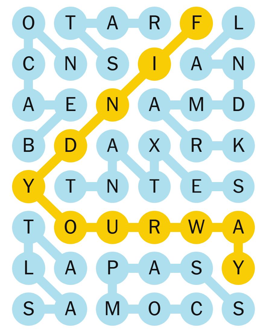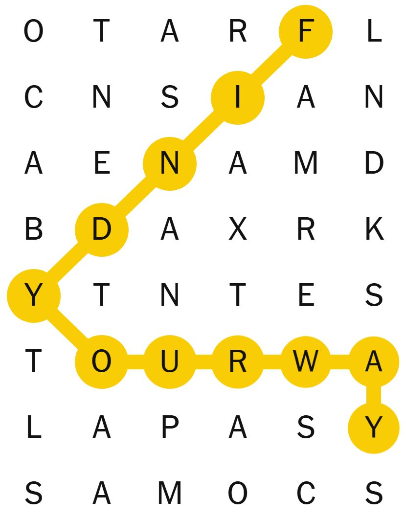 Once you have found the spangram word, it will stay highlighted in yellow.