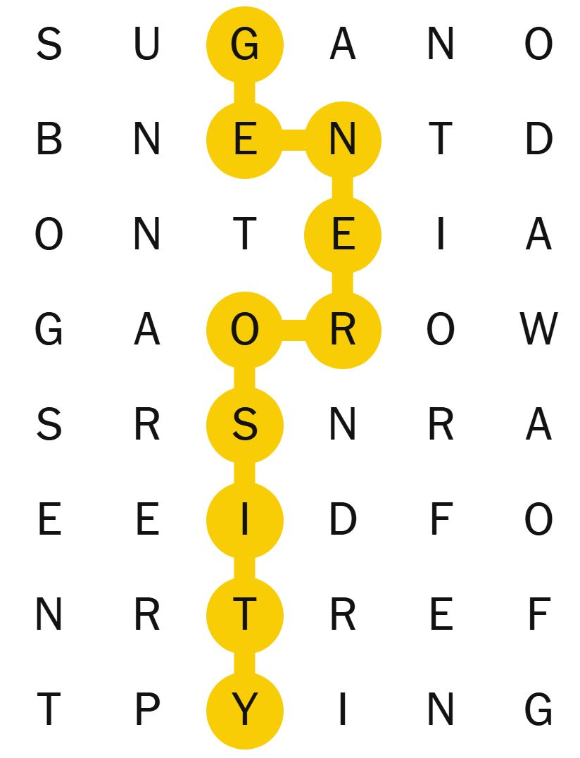 Once you have found the spangram word, it will stay highlighted in yellow.