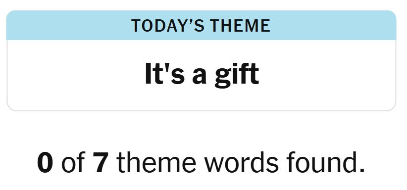 Today’s theme or hint for the puzzle is, “IT’S A GIFT” and there are seven theme words to be found.