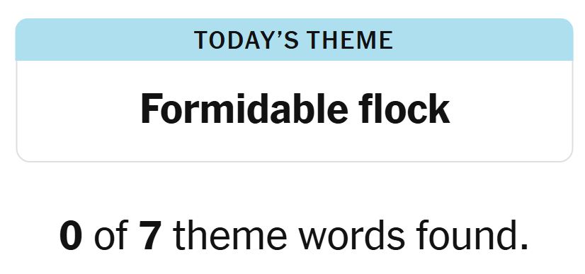 Today’s theme or hint for the puzzle is, “FORMIDABLE FLOCK” and there are seven theme words to be found.
