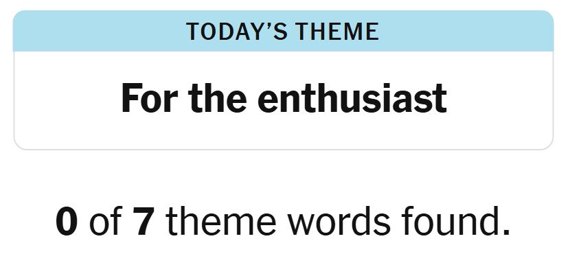Today’s theme or hint for the puzzle is, “FOR THE ENTHUSIAST” and there are seven theme words to be found.