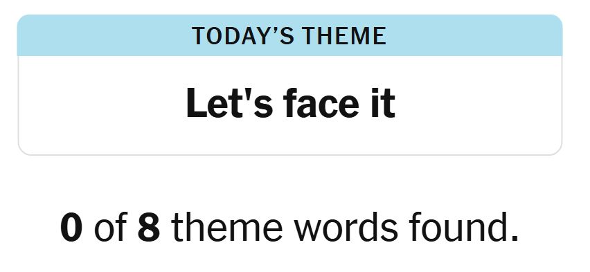 Today’s theme or hint for the puzzle is, “LET’S FACE IT” and there are eight theme words to be found.
