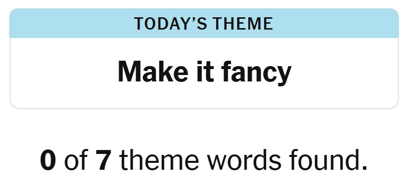 Today’s theme or hint for the puzzle is, “MAKE IT FANCY” and there are seven theme words to be found.