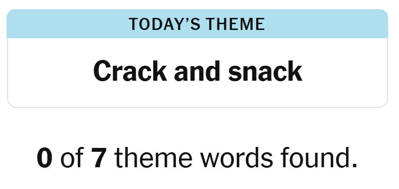 Today’s theme or hint for the puzzle is, “CRACK AND SNACK” and there are seven theme words to be found.