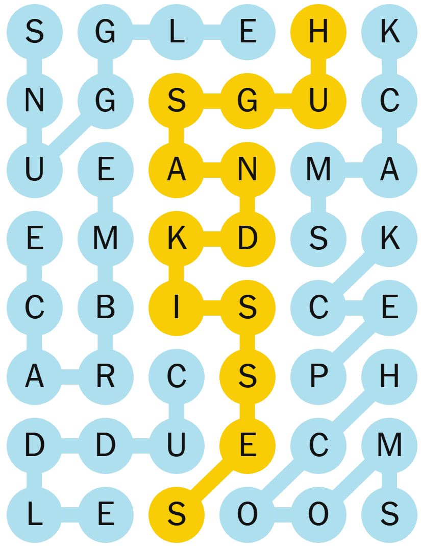 There is also a “spangram” which is a word on the board that describes the theme of the puzzle for the day. It will touch two opposite sides of the board and may be two words.