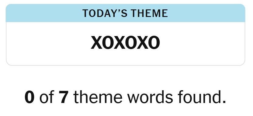 Today’s theme or hint for the puzzle is, “XOXOXO” and there are seven theme words to be found.