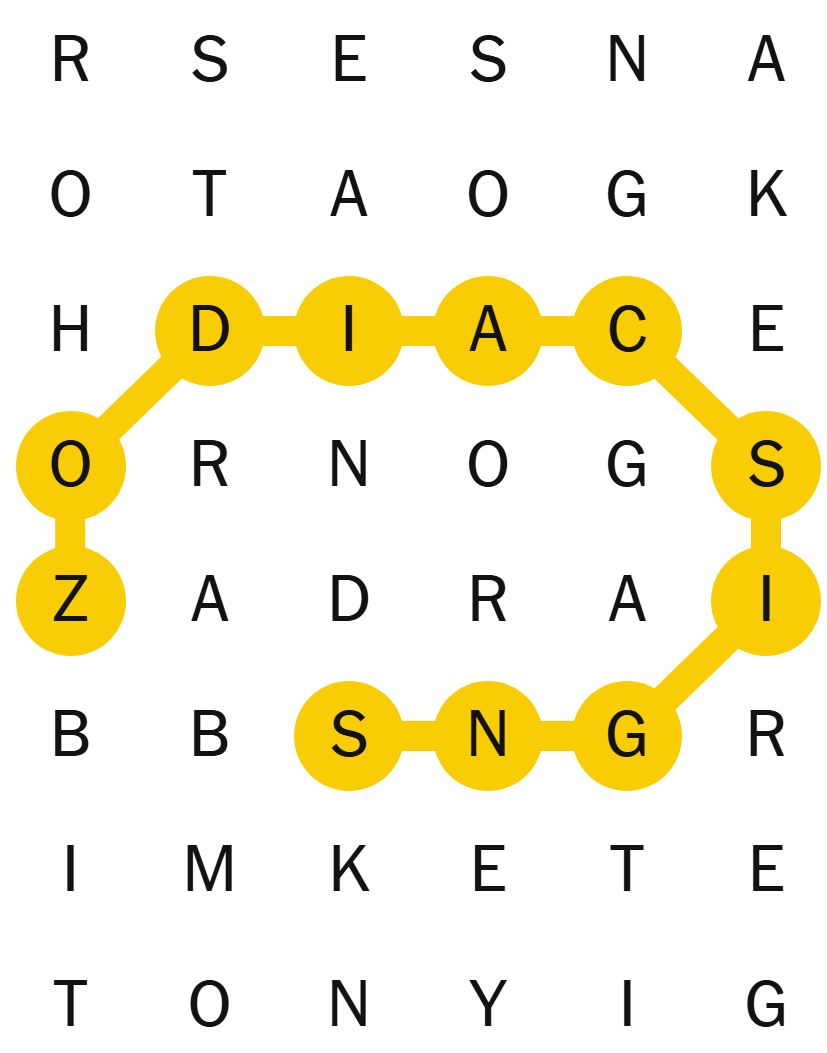 Once you have found the spangram word, it will stay highlighted in yellow.