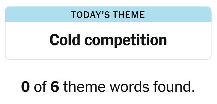 Today’s theme or hint for the puzzle is, “COLD COMPETITION” and there are six theme words to be found.