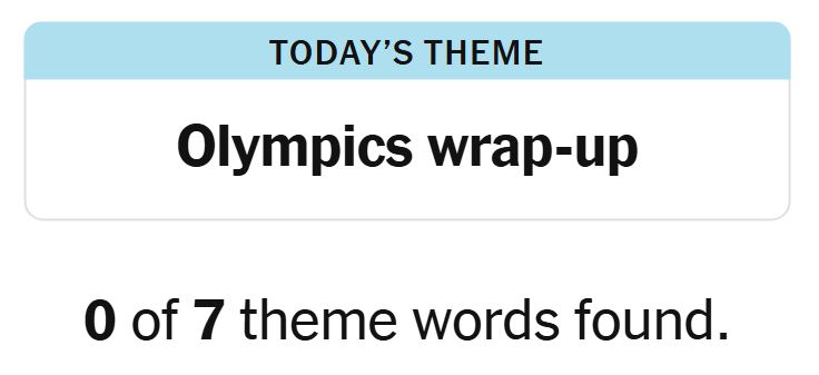 Today’s theme or hint for the puzzle is, “OLYMPICS WRAP-UP” and there are seven theme words to be found.
