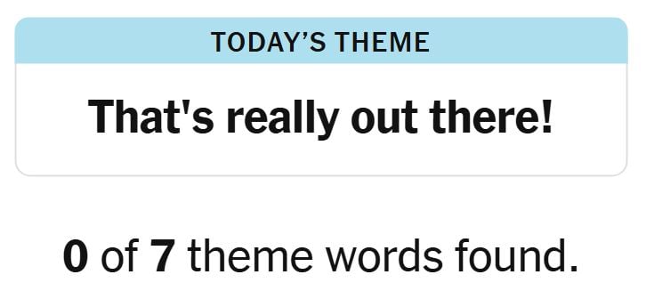 Today’s theme or hint for the puzzle is, “THAT’S REALLY OUT THERE!” and there are seven theme words to be found.