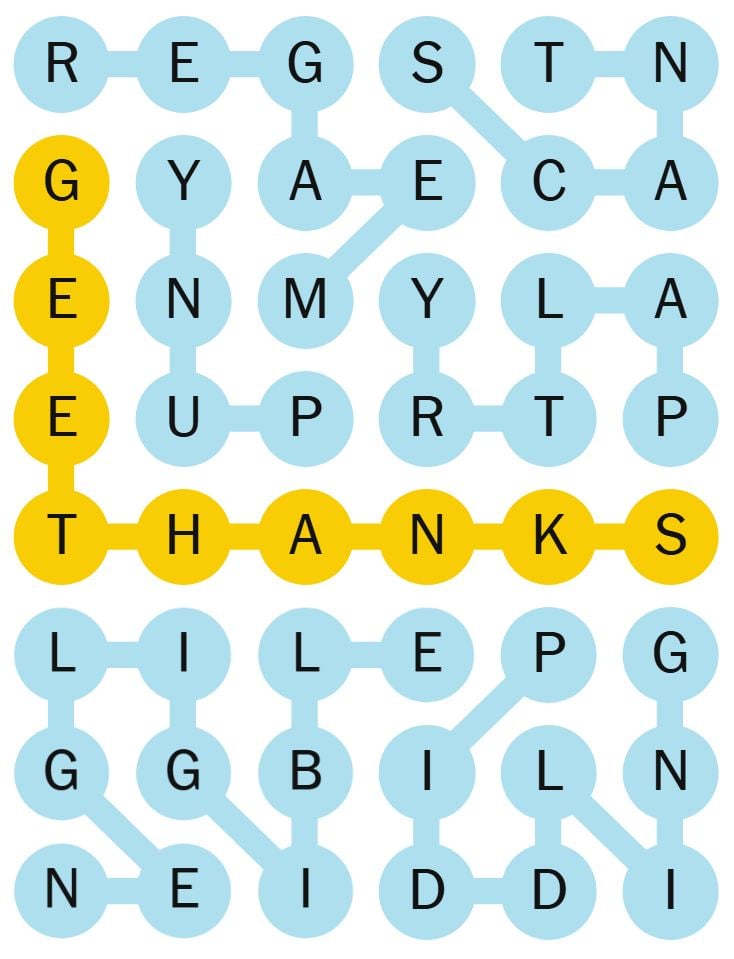 There is also a “spangram” which is a word on the board that describes the theme of the puzzle for the day. It will touch two opposite sides of the board and may be two words.