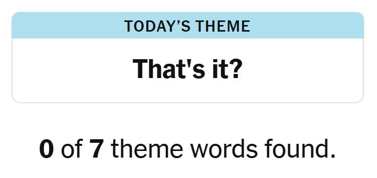 Today’s theme or hint for the puzzle is, “THAT’S IT?” and there are seven theme words to be found.