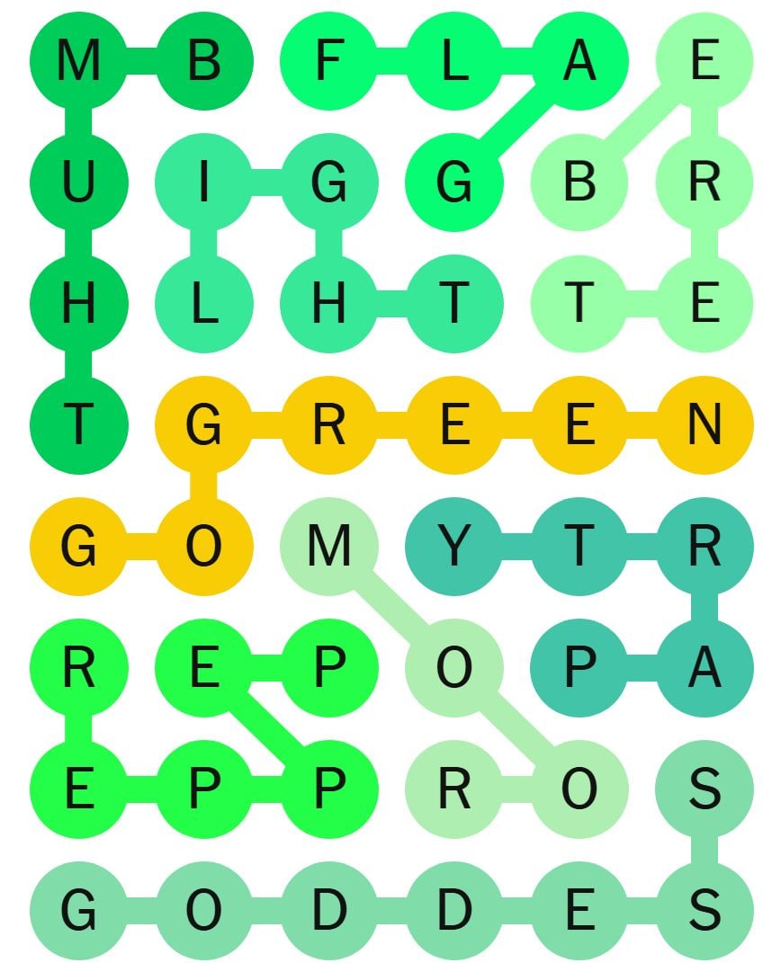 Once you have found the spangram word, it will stay highlighted in yellow.