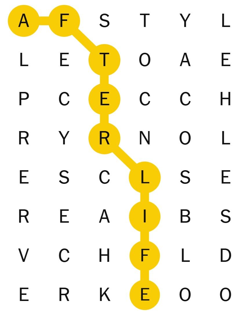 Once you have found the spangram word, it will stay highlighted in yellow.