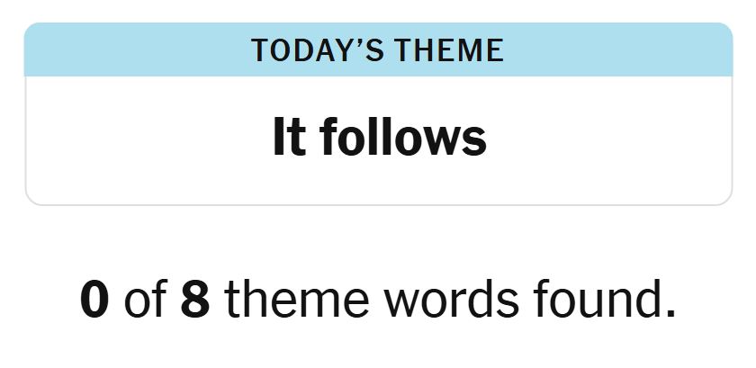 Today’s theme or hint for the puzzle is, “IT FOLLOWS” and there are eight theme words to be found.