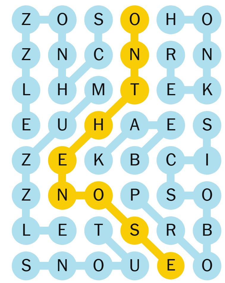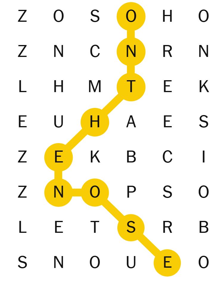 The word starts at the top and ends at the bottom of the grid. The Spangram looks like a side profile of a nose.
