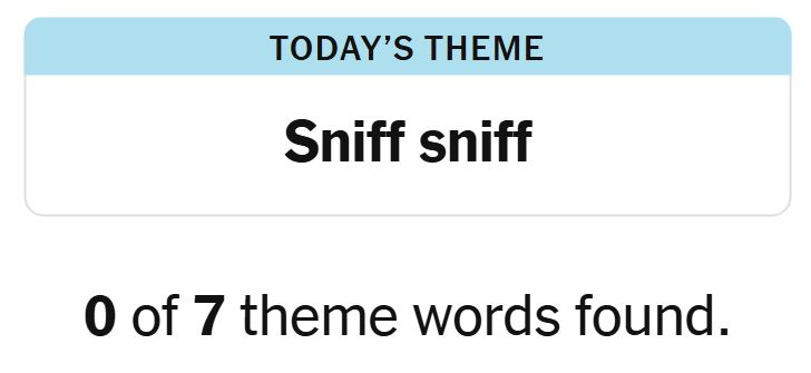 Today’s theme or hint for the puzzle is, “SNIFF SNIFF” and there are seven theme words to be found.