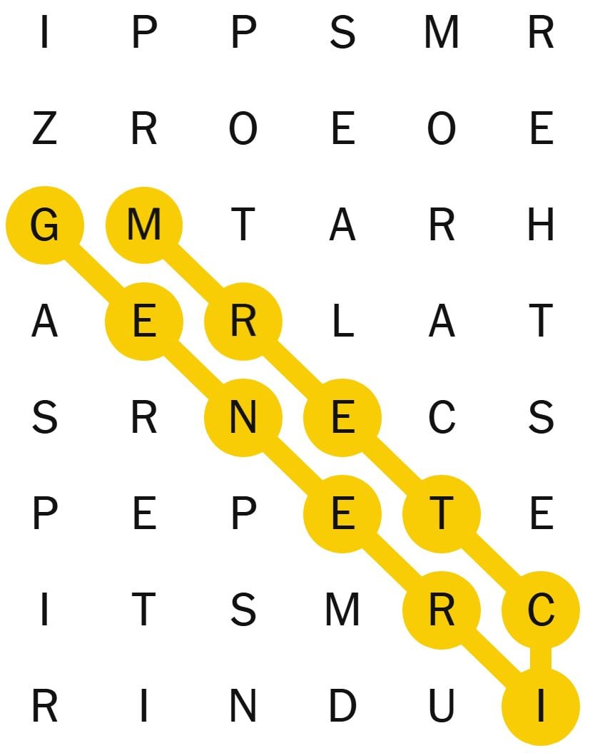 Once you have found the spangram word, it will stay highlighted in yellow.