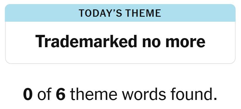 Today’s theme or hint for the puzzle is, “TRADEMARKED NO MORE” and there are six theme words to be found.