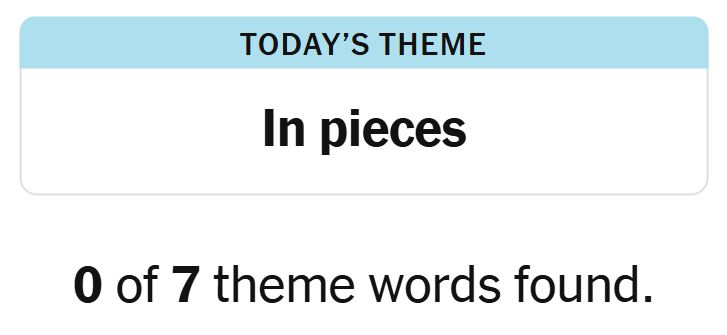 Today’s theme or hint for the puzzle is, “IN PIECES” and there are seven theme words to be found.
