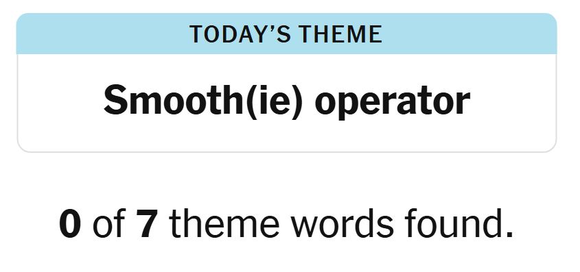 Today’s theme or hint for the puzzle is, “SMOOTH(IE) OPERATOR” and there are seven theme words to be found.