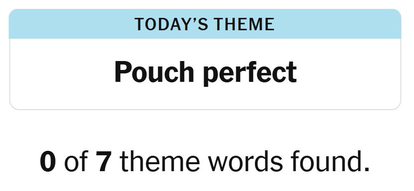 Today’s theme or hint for the puzzle is, “POUCH PERFECT” and there are seven theme words to be found.