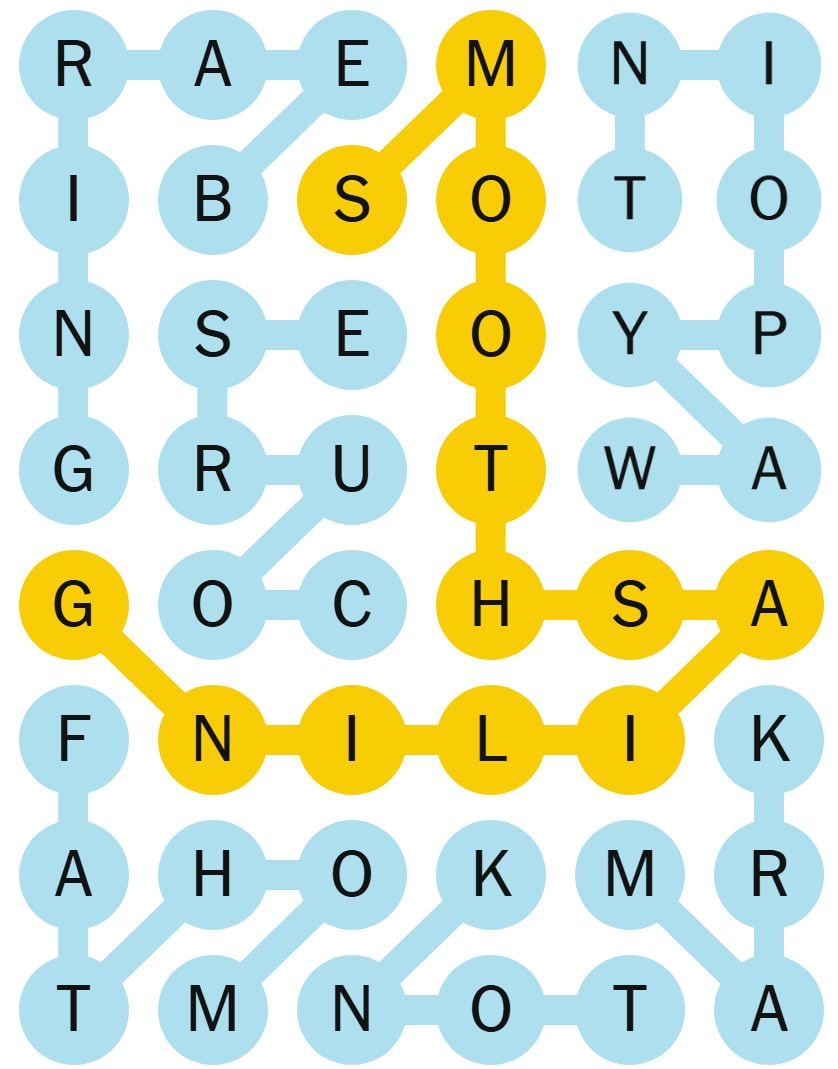 The word starts near the top, hits the top, goes down, hits the right and left side of the grid. The Spangram makes the shape of a boat.