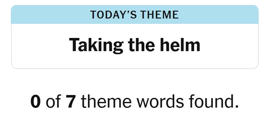 Today’s theme or hint for the puzzle is, “TAKING THE HELM” and there are seven theme words to be found.