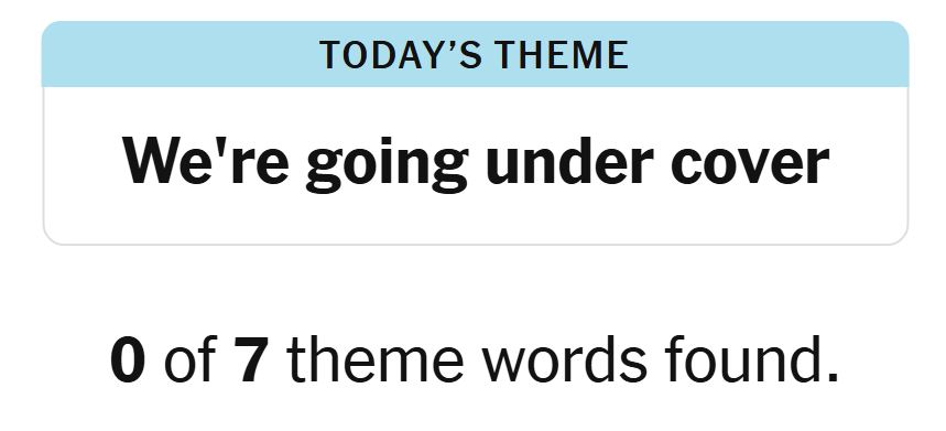 Today’s theme or hint for the puzzle is, “WE’RE GOING UNDER COVER” and there are seven theme words to be found.