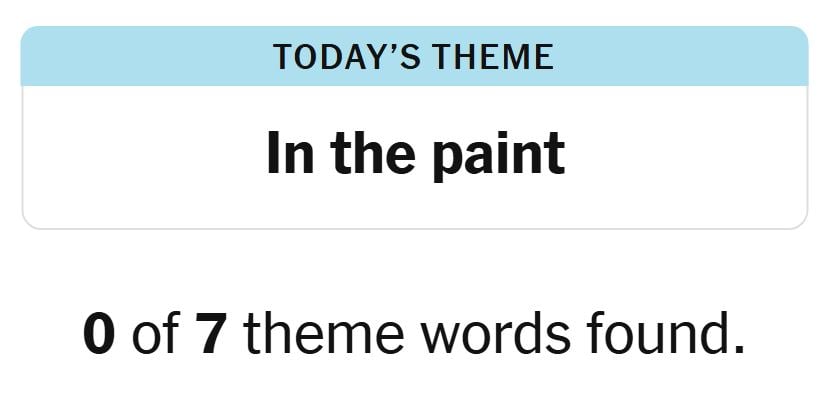 Today’s theme or hint for the puzzle is, “IN THE PAINT” and there are seven theme words to be found.