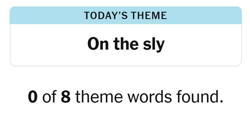 Today’s theme or hint for the puzzle is, “ON THE SLY” and there are eight theme words to be found.