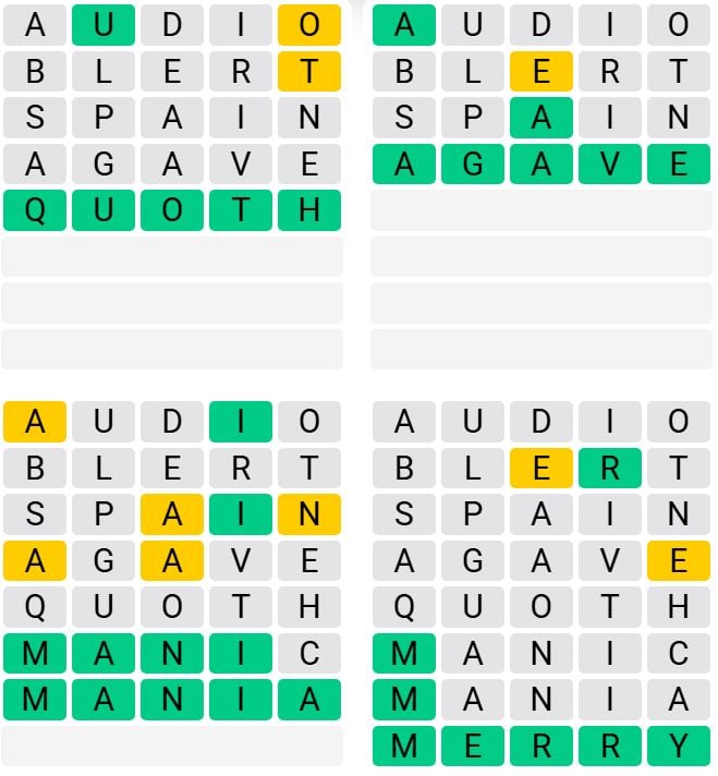 It is the most popular daily word game outside of Wordle due to the increased level of difficulty. Players must guess four five-letter words in as few as nine attempts, rather than guessing one word.