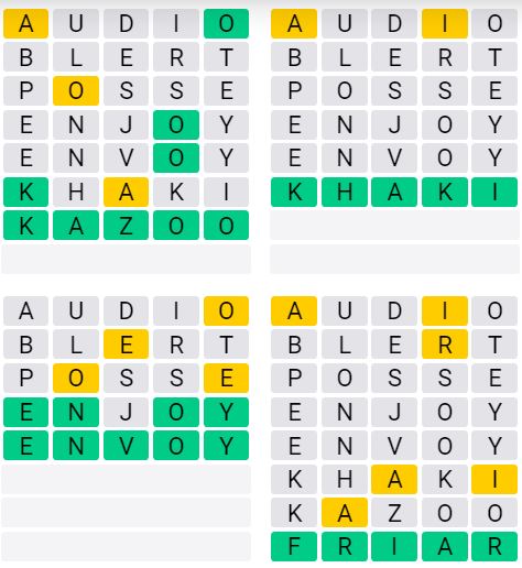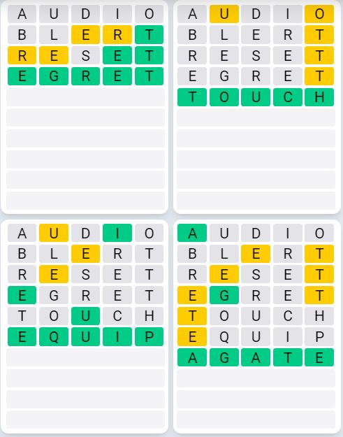 Let us know how many attempts it took you to guess today’s Quordle below!