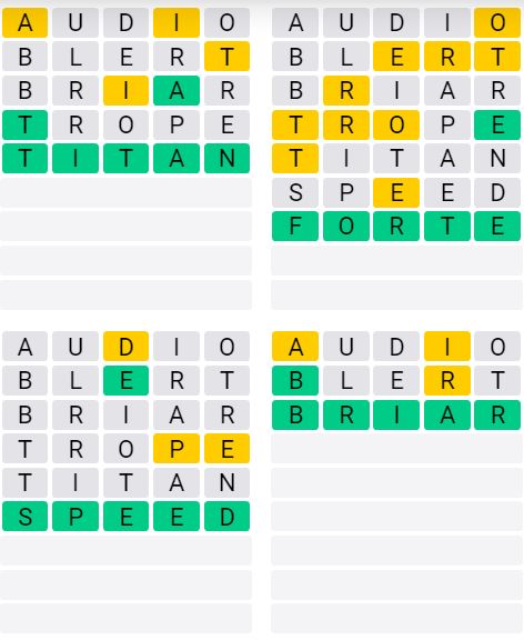 The answers to Quordle Sequence released today are: