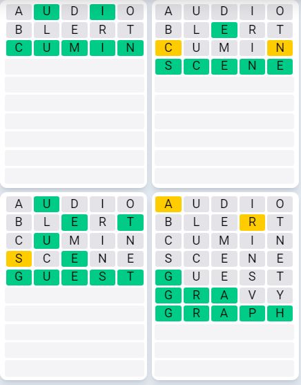 It is the most popular daily word game outside of Wordle due to the increased level of difficulty. Players must guess four five-letter words in as few as nine attempts, rather than guessing one word.