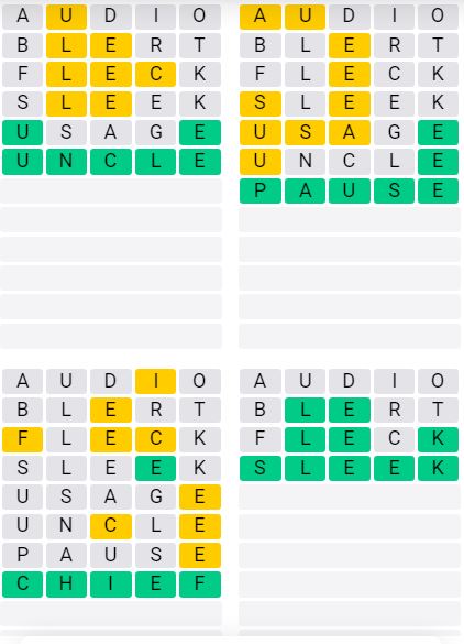 It is the most popular daily word game outside of Wordle due to the increased level of difficulty. Players must guess four five-letter words in as few as nine attempts, rather than guessing one word.