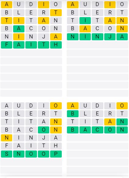 The answers to Quordle Sequence released today are: