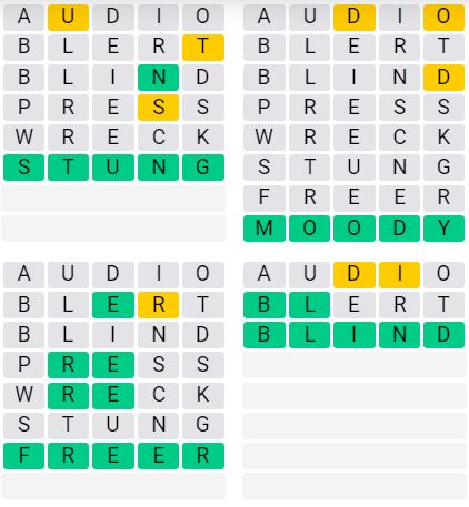 It is the most popular daily word game outside of Wordle due to the increased level of difficulty. Players must guess four five-letter words in as few as nine attempts, rather than guessing one word.
