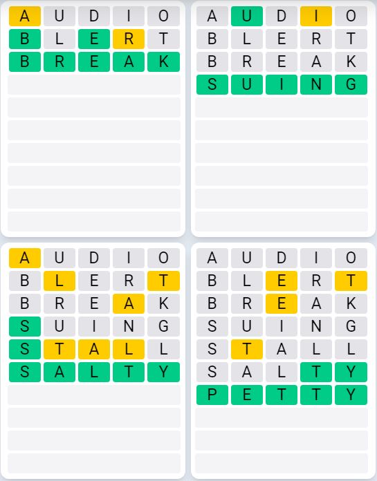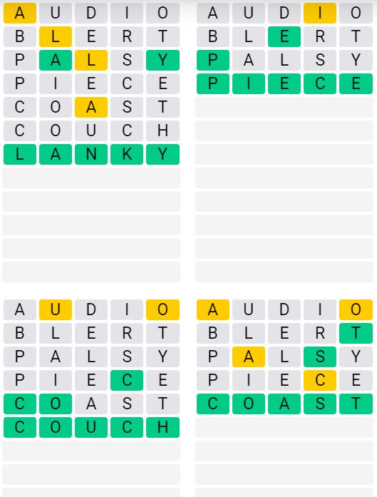 It is the most popular daily word game outside of Wordle due to the increased level of difficulty. Players must guess four five-letter words in as few as nine attempts, rather than guessing one word.