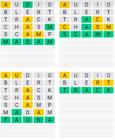 Let us know how many attempts it took you to guess today’s Quordle below!