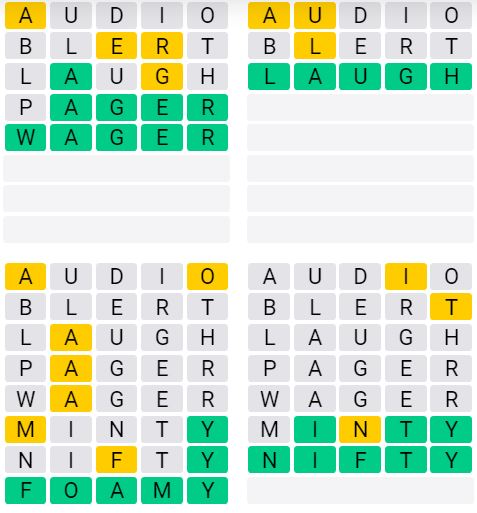 It is the most popular daily word game outside of Wordle due to the increased level of difficulty. Players must guess four five-letter words in as few as nine attempts, rather than guessing one word.