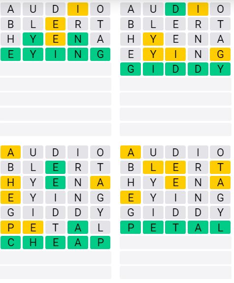 It is the most popular daily word game outside of Wordle due to the increased level of difficulty. Players must guess four five-letter words in as few as nine attempts, rather than guessing one word.