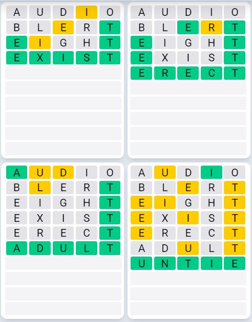 It is the most popular daily word game outside of Wordle due to the increased level of difficulty. Players must guess four five-letter words in as few as nine attempts, rather than guessing one word.