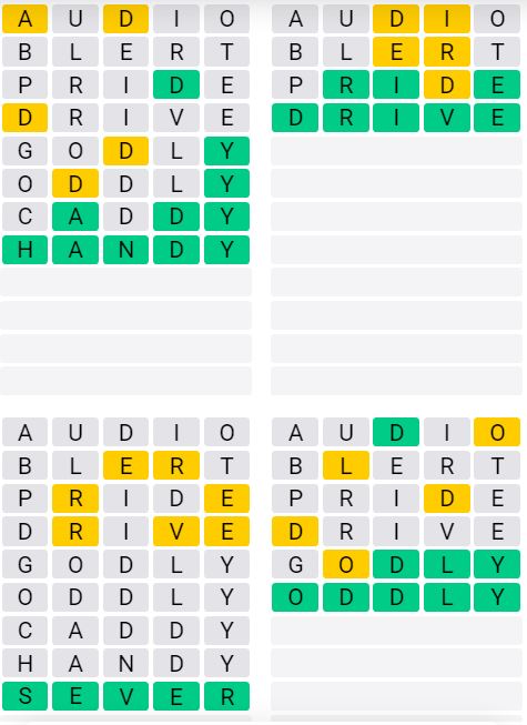 The answers to Quordle Sequence released today are: