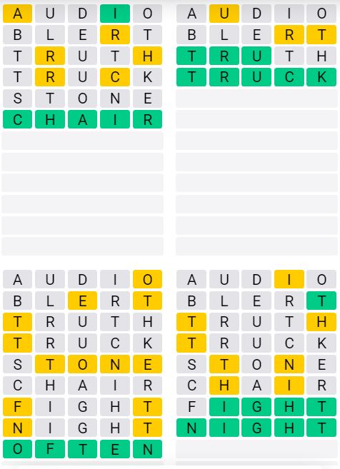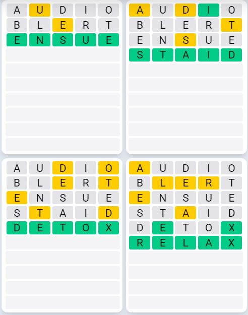 It is the most popular daily word game outside of Wordle due to the increased level of difficulty. Players must guess four five-letter words in as few as nine attempts, rather than guessing one word.