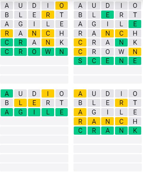 The answers to Quordle Sequence released today are:
