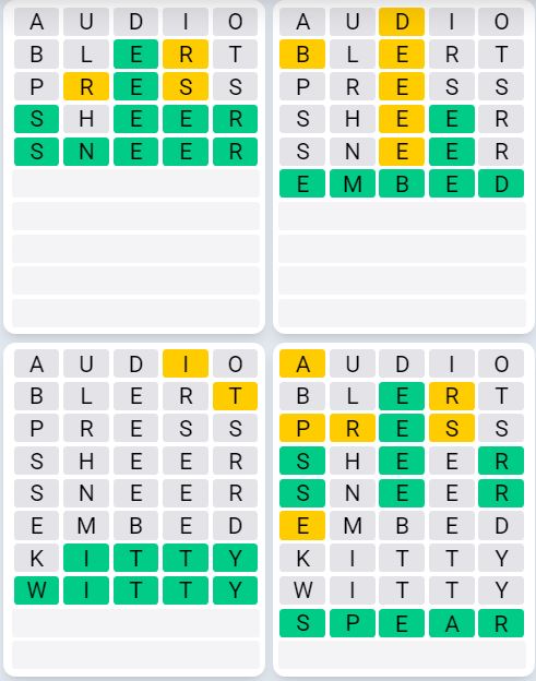 It is the most popular daily word game outside of Wordle due to the increased level of difficulty. Players must guess four five-letter words in as few as nine attempts, rather than guessing one word.