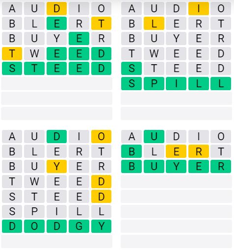 Let us know how many attempts it took you to guess today’s Quordle below!